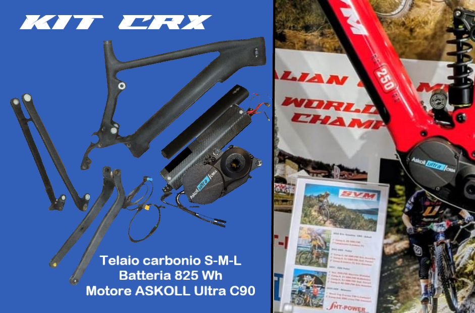 Oltre alla produzione di e-bike complete , per accontentare il maggior numero di clienti SVM Bike ha deciso di allestire un kit di primo montaggio composto da : telaio in carbonio + motore Askoll ULTRA C90 + batteria da 825 Wh.